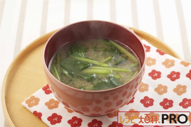 鍋にAを入れて中火で煮立て、ほうれん草を入れてひと煮立ちさせ、みそを溶き入れる。