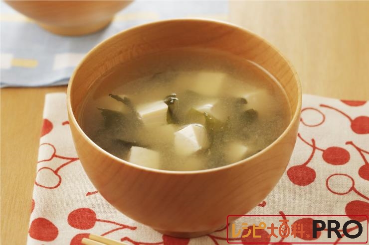 鍋に水、「ほんだし® かつおだし」半量を入れ、中火にかける。煮立ったら豆腐を加えて1分ほど煮、わかめを加えてひと煮立ちさせる。