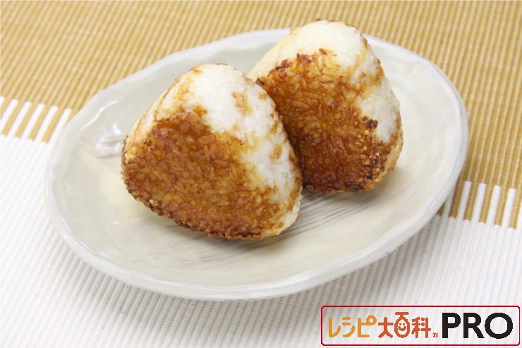 オーブントースターでおにぎりを両面色よく焼く。しょうゆをハケで塗って焼き、これを2回ずつくり返して香りよく焼く。