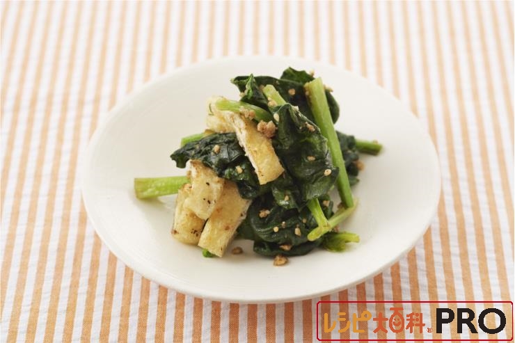 フライパンに油揚げを入れて炒め、ほうれん草、Aを加えてサッと炒める。