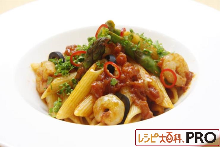 えびとアスパラのペンネ