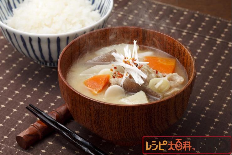 Bを加えて10分煮、じゃがいも、ねぎを加える。じゃがいもに火が通ったらみそを溶き入れる。
