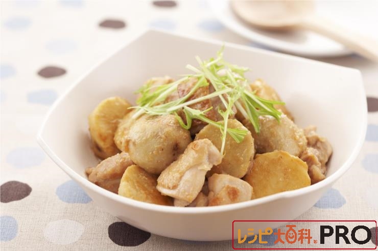 フライパンに油を熱し、里いも・鶏肉の順に入れ、強火で少し焼き色がつくまで焼き、Bを加え、フタをして強めの中火で3分煮る。