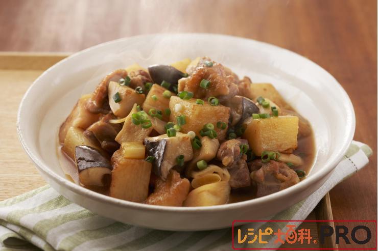 エリンギ、長ねぎ、Aを加え、落としぶたをして長いもがやわらかくなるまで中火で3分、弱火で7分煮る。