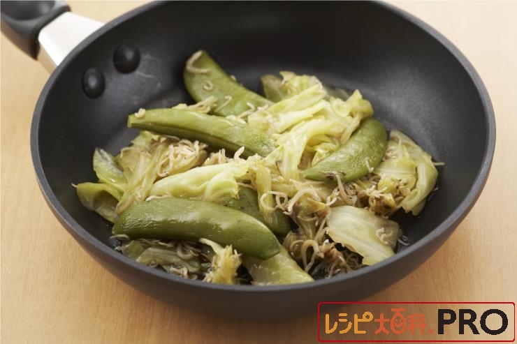 スナップえんどうとキャベツのジャコ入りさっと炒め