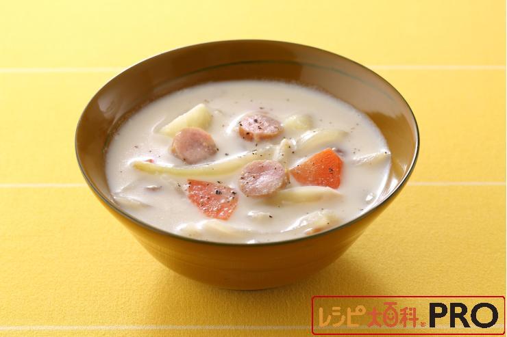 牛乳を加えて煮立ったら、みそを溶き入れ、しょうゆで味を調える。