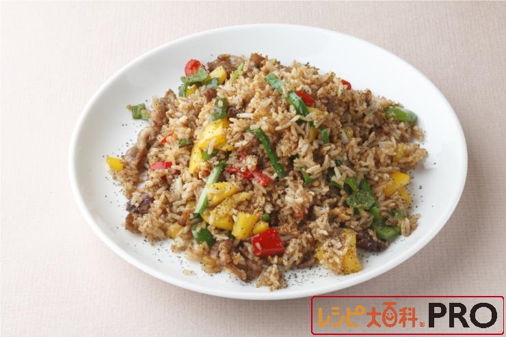 (4)に(3)のチャーハンを加えて、ソースをからめ