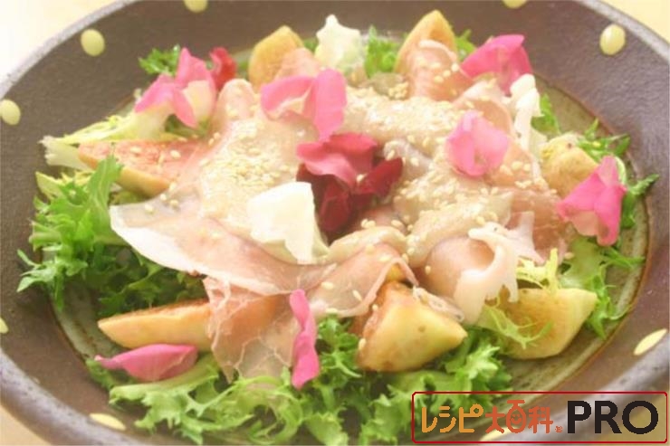 生ハムと女性に人気のいちぢくを、ナッツソースでまとめたサラダ