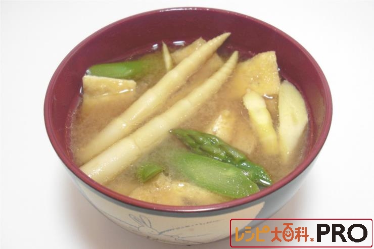 細たけとアスパラの歯ごたえが楽しいおみそ汁
