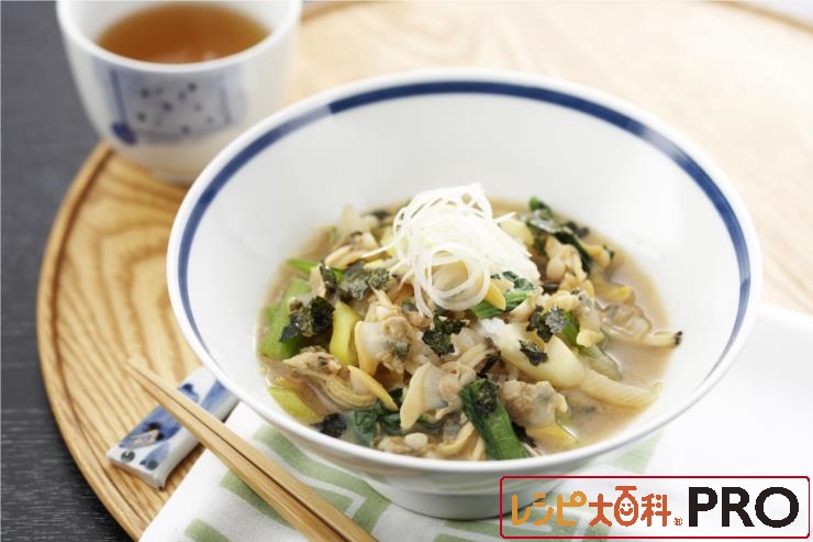 合わせたB、しょうがを加えて味を調え、あさりを加えてひと煮立ちしたら、小松菜を散らして2分ほど煮る。