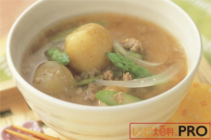 新じゃがと豚ひき肉・アスパラのおかず椀