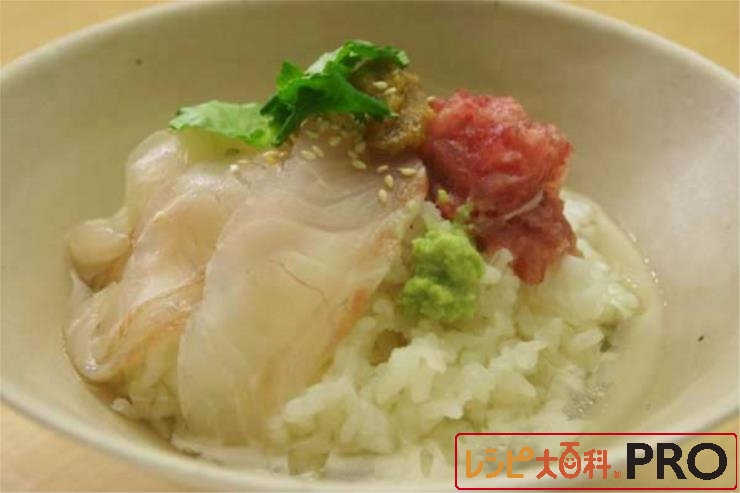 鯛とマグロのすき身の紅白茶漬け
