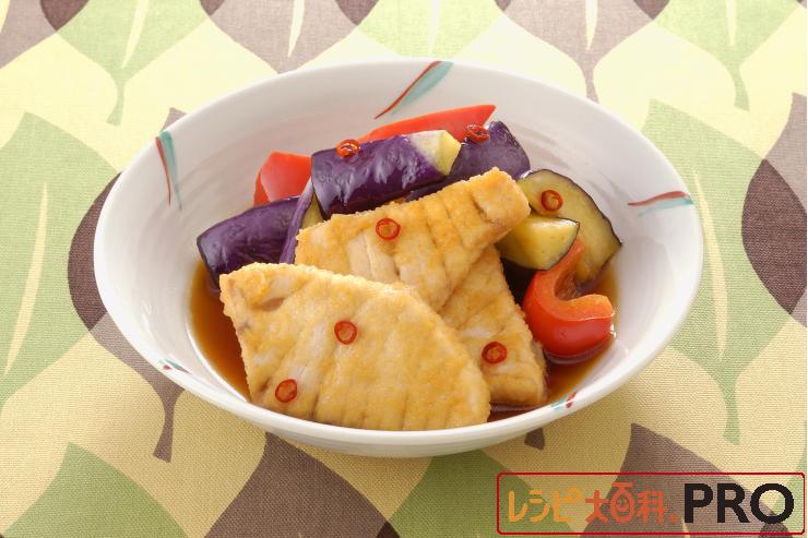 かじきは小麦粉を薄くふる。なすはタテ4等分にし、