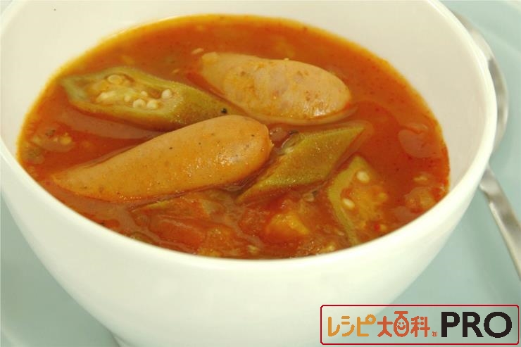 オクラを加えてサッと煮、チリパウダーを加えて味を調える。