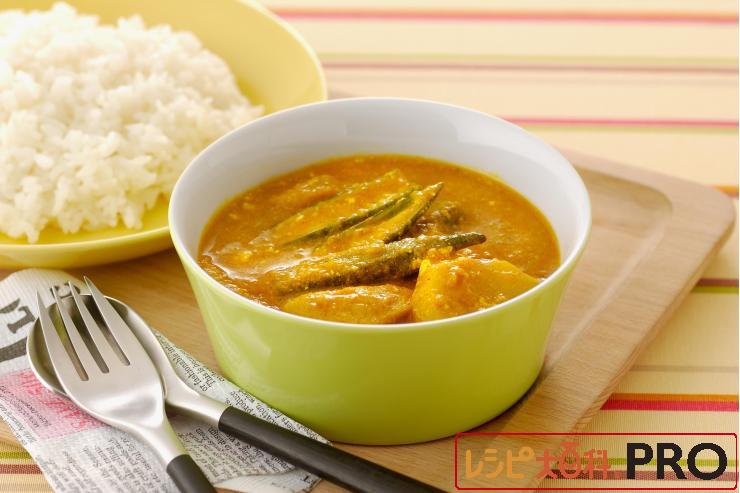 Cを加えてフタをしないで5分煮る。じゃがいもを加えて5分煮て、オクラを加えて3~5分煮る。