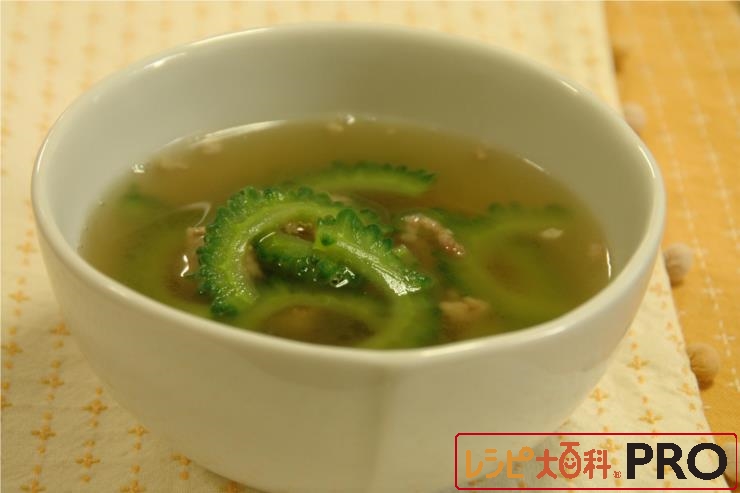 鍋にごま油を熱し、豚ひき肉を炒め、ほぐれたらAを加える。沸騰したら、しょうが、ゴーヤ、Bを加えてひと煮する。