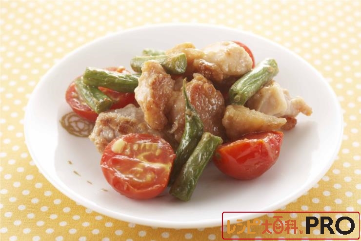 フライパンに油を熱し、鶏肉を両面焼き、焼き色がついたら余分な油をキッチンペーパーで拭き取る。さやいんげんを加えて炒め、Aを加えて2~3分煮る。