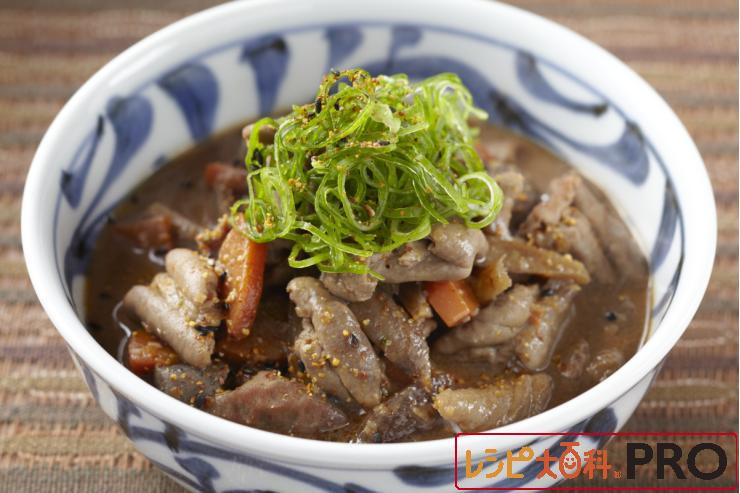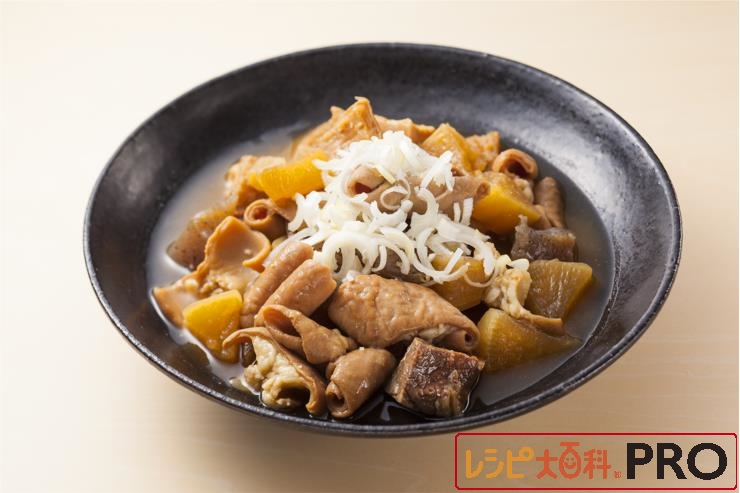 (2)にBを入れ、ホルモンがやわらかくなり、味がしみ込むまで、さらに煮込む。