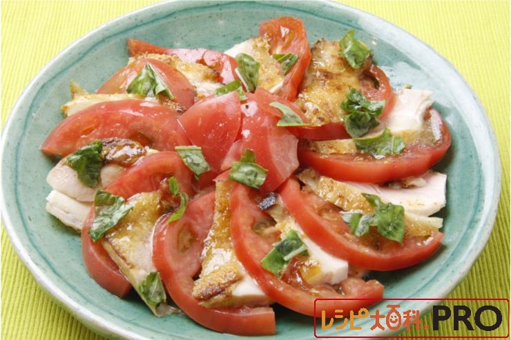 器に(2)、トマトを盛りつけ、「味の素DR セミセパレモン」をかけ、パセリを散らす。