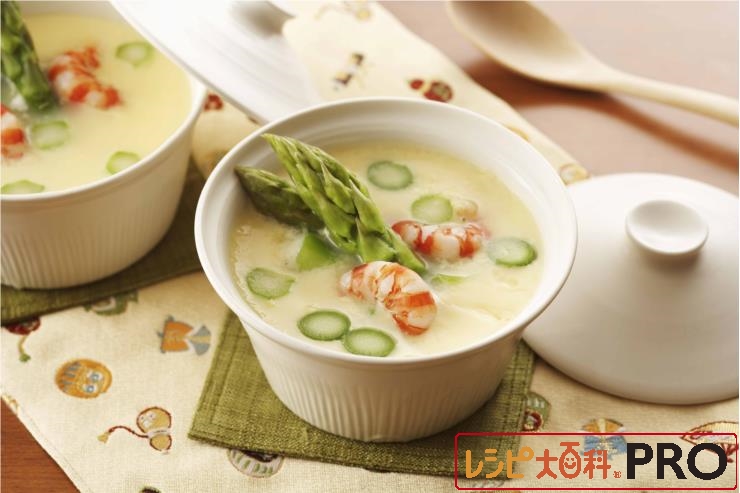 えびとアスパラで彩りよく上品に仕上げた中華風茶碗蒸し
