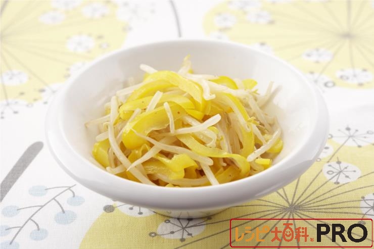鍋に湯を沸かし、もやし、パプリカの順にゆで、ザルに上げて水気をきる。