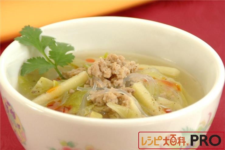 たっぷりキャベツと春雨の酢辣湯風スープ