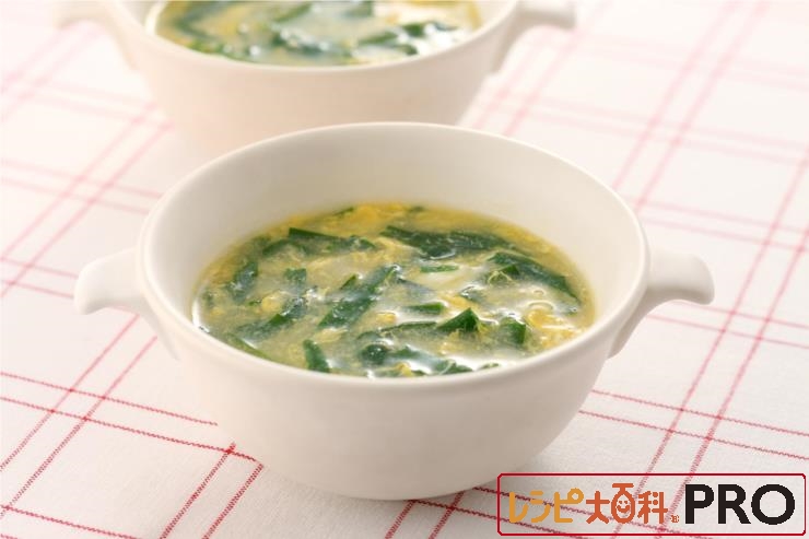 鍋にAを入れて火にかけ、煮立ったらにらを加え、ひと煮立ちしたら水溶き片栗粉を回し入れてとろみをつける。