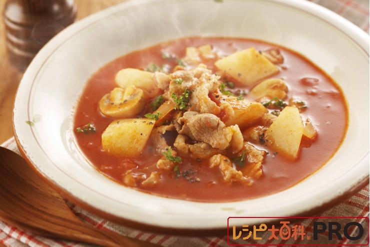 「味の素KKコンソメ」でホールトマトの酸味がやわらいでコクが加わり、味がまとまります