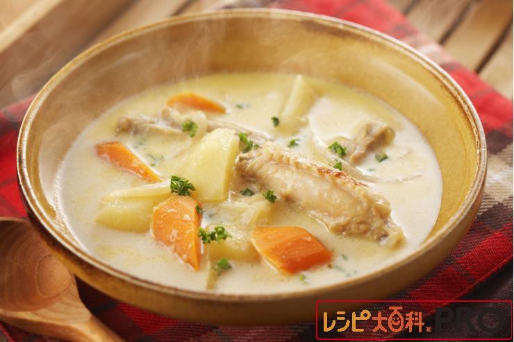 鶏手羽先と野菜のうま味がギュッとつまったミルクスープ