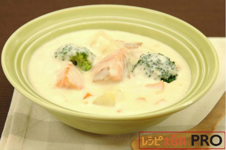 ベーコンと生クリームでコクアップ!さけとたっぷり野菜のチャウダー