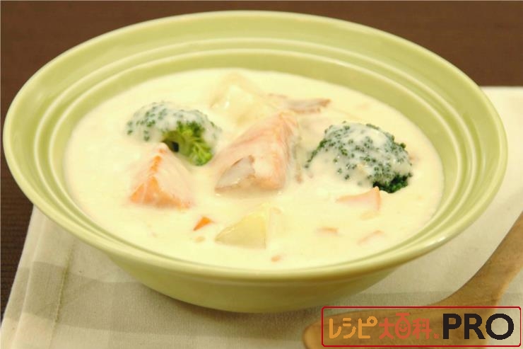 ベーコンと生クリームでコクアップ!さけとたっぷり野菜のチャウダー