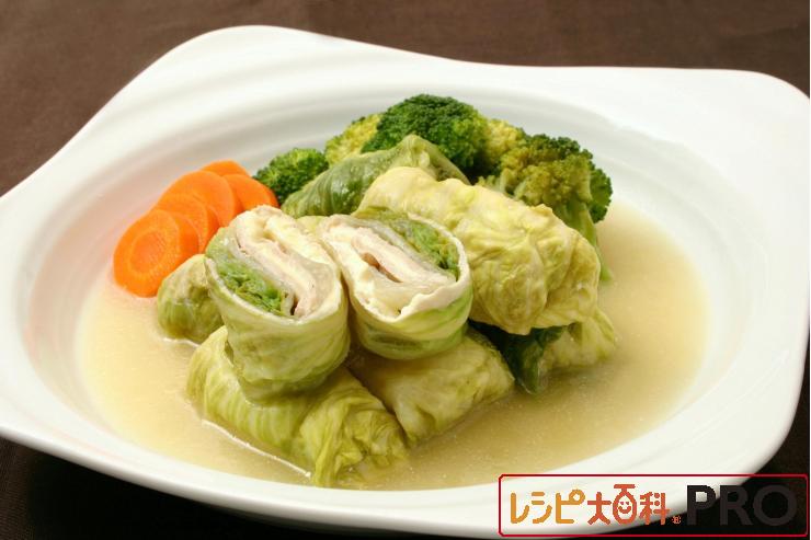 サッとゆでたレタスを広げ、Aを順に重ねる。手前からすきまができないように巻いていき、巻き終わりは楊枝で留める。同様にこれを8個作る。