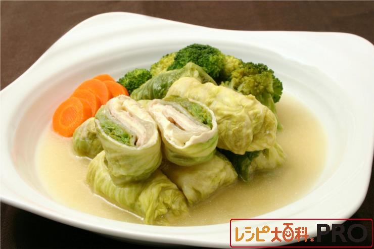 サッとゆでたレタスを広げ、Aを順に重ねる。手前からすきまができないように巻いていき、巻き終わりは楊枝で留める。同様にこれを8個作る。