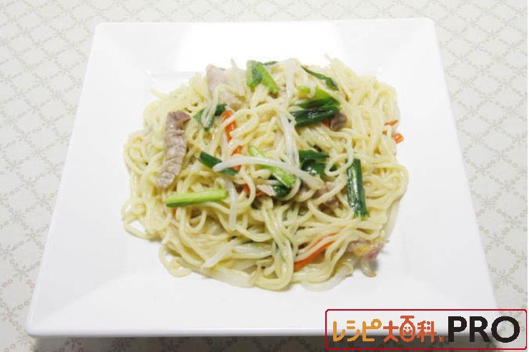 (1)に焼きそばを加えて炒め合わせ、Bを加え、