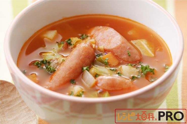 ソーセージを加えてサッと煮て、塩で味を調える。
