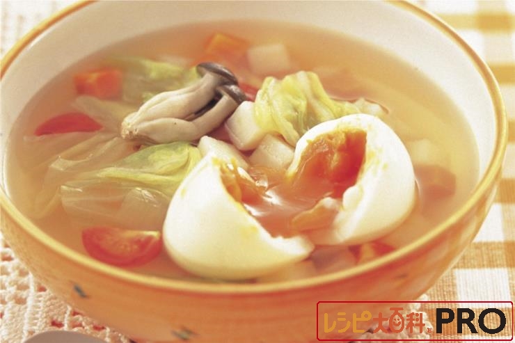 半熟たまごとたっぷり野菜のスープ