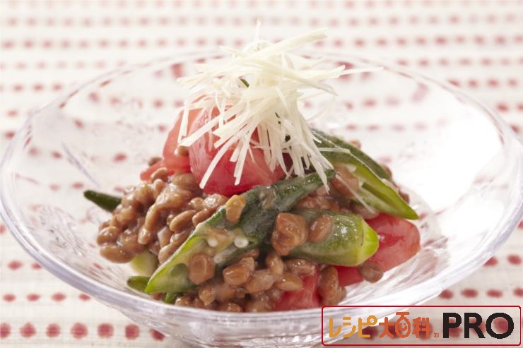 オクラとトマト、納豆のオリーブオイルあえ