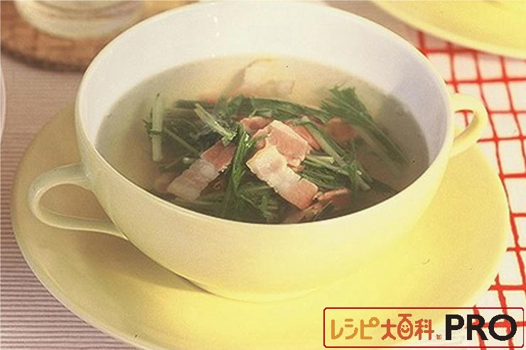 鍋にA、ベーコンを入れて中火にかける。煮立ったら弱火にして3分ほど煮る。