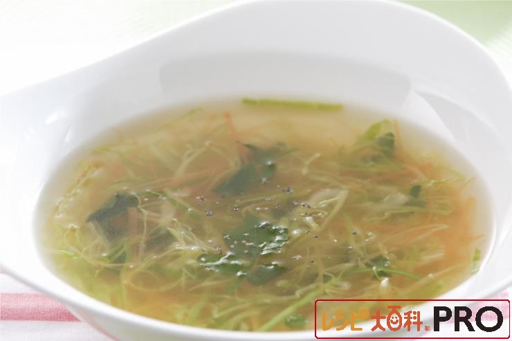 せん切り野菜をサッと煮て手軽に作れるコンソメスープ
