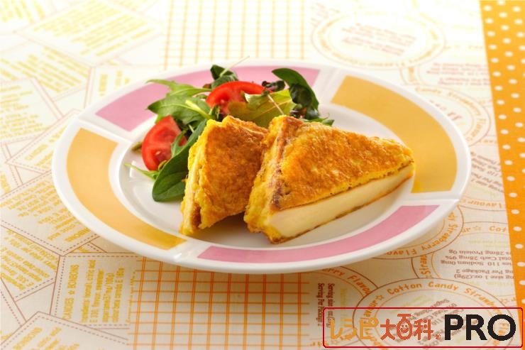 フライパンにオリーブオイルを熱し、(2)を両面を焼き、残った衣を何度かつけながら色よく焼く。