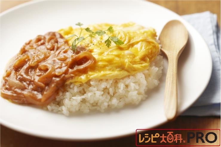 ご飯に「コンソメ」、バター5gを混ぜ合わせ、バターライスを作り、器に盛る。