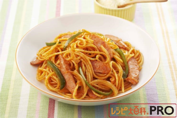 ゆで上がったスパゲッティを加えて炒め、Cで味を調える。お好みで粉チーズをふっていただく。