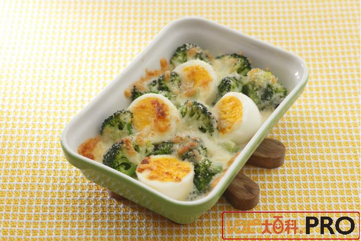 ゆで卵とブロッコリーをマヨネーズソースとチーズで焼き上げました