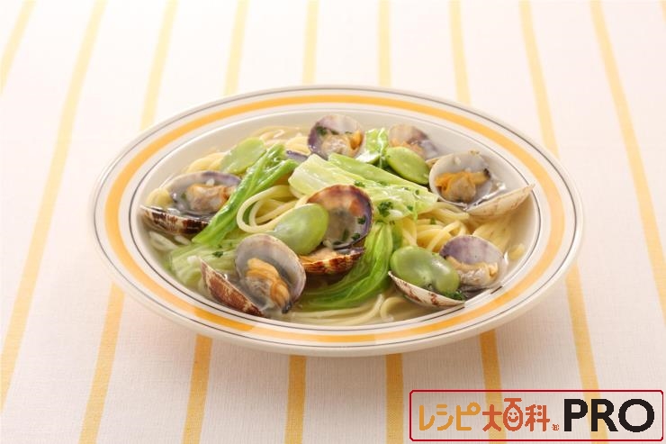 あさりと春野菜のうま味が溶け出したスープにパスタをからめて