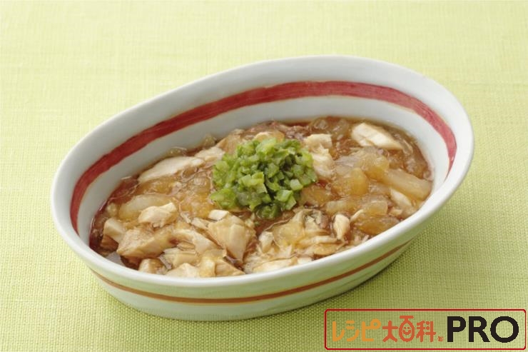 (2)のぶりを小さくほぐし、大根は細かく切り、Cを加えてもっとやわらかく煮て、水溶き片栗粉でとろみをつける。
