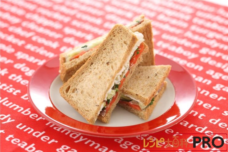 ライ麦パンに(1)を塗り、Bをはさむ。