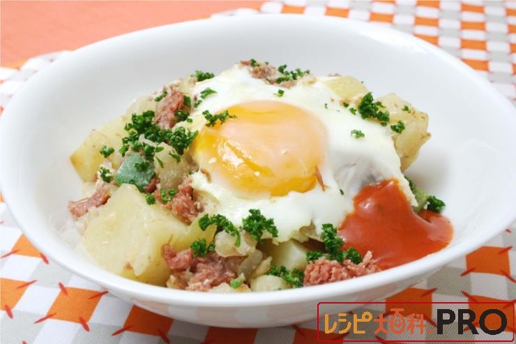 鍋に湯を沸かし、「コンソメ」を入れてじゃがいもをゆでて、ザルに上げて水気をきる。