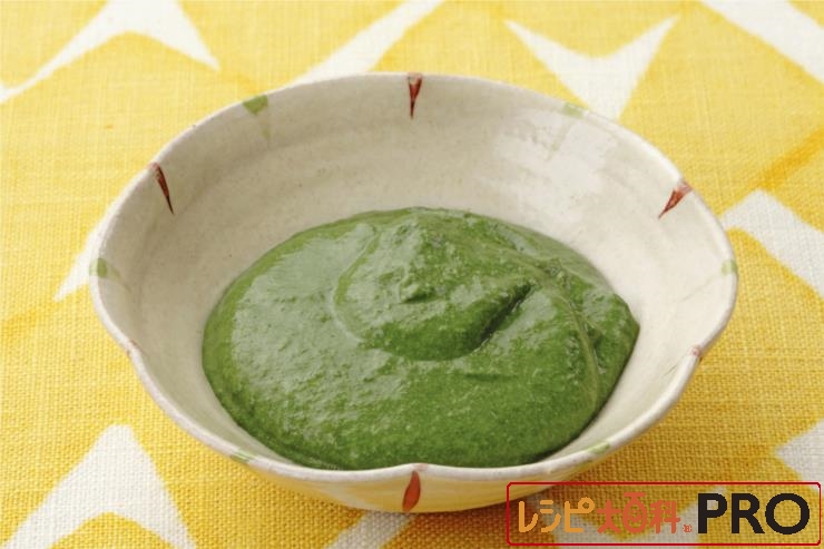 すり鉢に(2)を入れて、なめらかになるまですり、Aを加えてよく混ぜる。