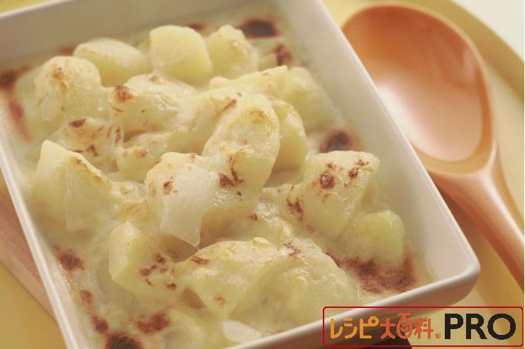 じゃがいもを「コンソメ」と牛乳で煮たら、チーズをのせて焼くだけ!