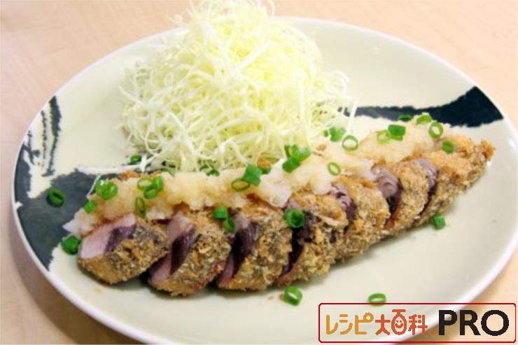 (1)の水気を取って、Bで衣をつけ、高温の揚げ油